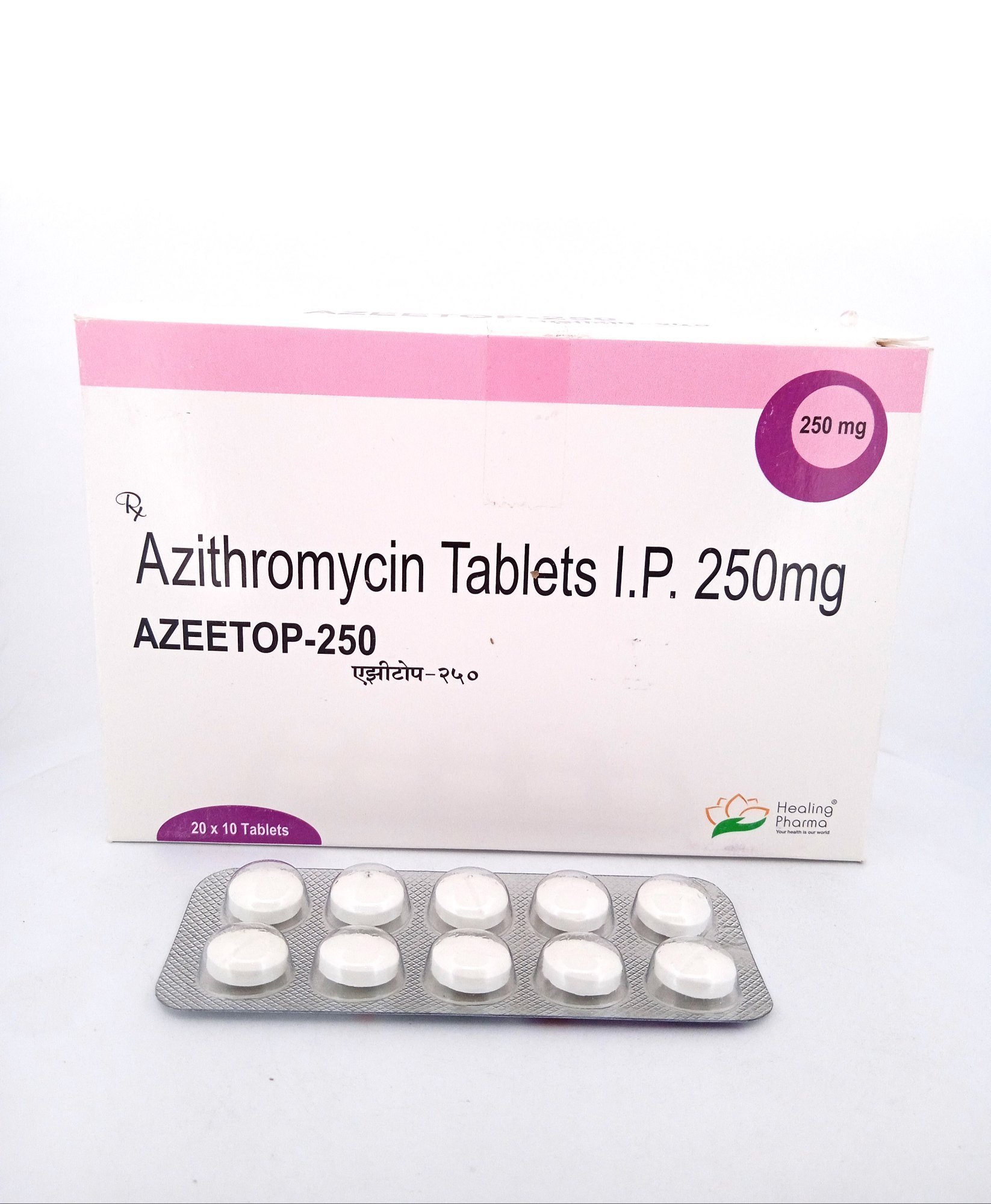 Azeetop 250mg Tablet is an azithromycin-based antibiotic used to treat a wide variety of bacterial infections in adults and children, including respiratory tract infections (pneumonia, bronchitis), throat, sinus, ear, skin, and soft tissue infections. It is also effective for sexually transmitted infections (like chlamydia and gonorrhea) and typhoid fever.