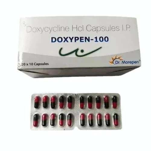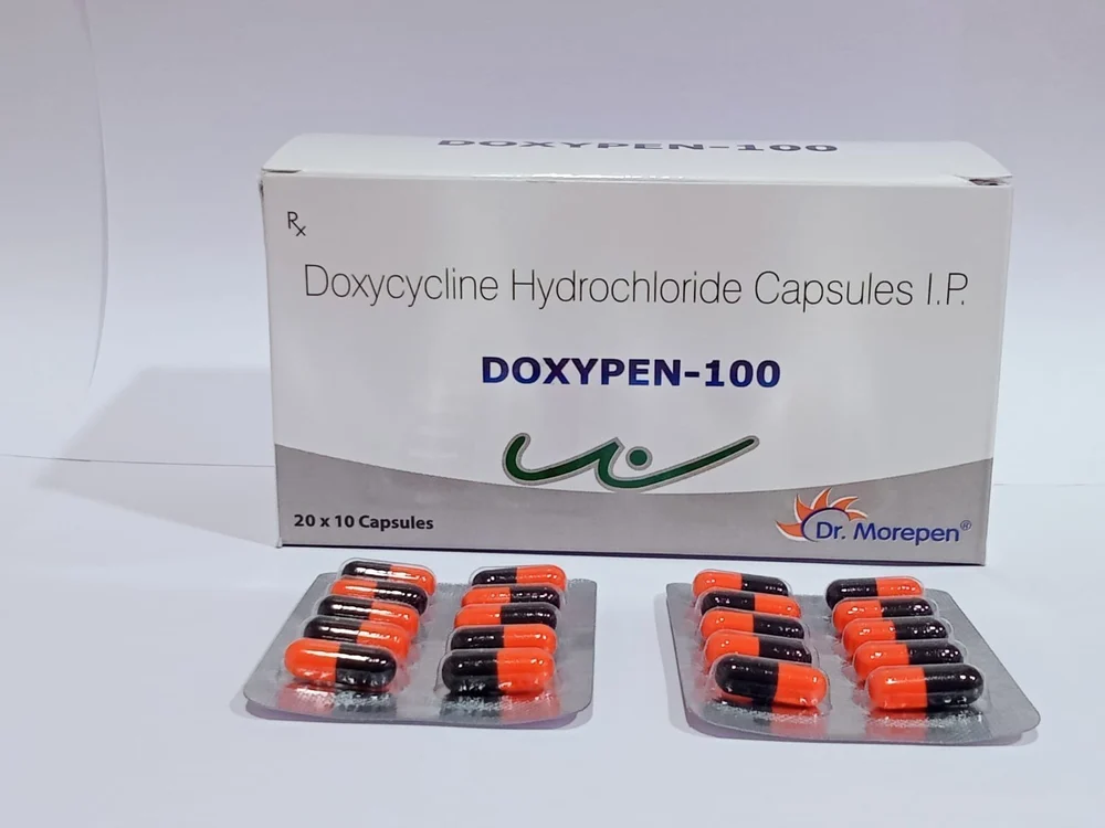 Doxypen 100 Capsule (Doxycycline) is a broad-spectrum antibiotic used to treat various bacterial infections, including those of the respiratory tract, urinary tract, skin, eyes, and sexually transmitted infections like chlamydia and syphilis. It is also effective for treating moderate-to-severe acne and preventing malaria.