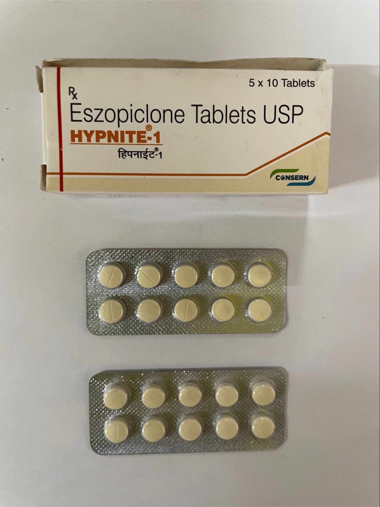 Hypnite 1mg Tablet is a prescription sedative-hypnotic medicine containing Eszopiclone, designed to treat insomnia by helping users fall asleep faster and stay asleep longer. It acts on brain neurotransmitters to produce a calming effect, improving sleep quality. Common side effects include dizziness, headache, and metallic taste.