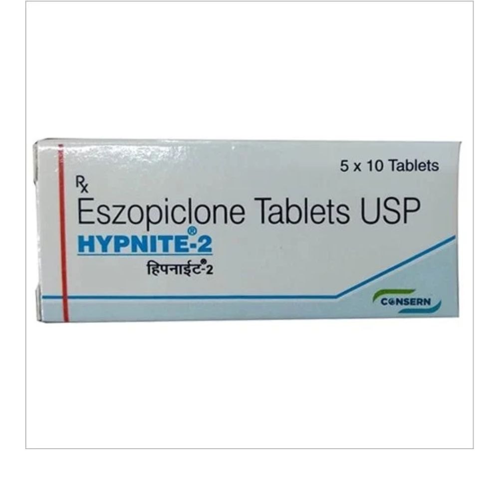 Hypnite 2mg Tablet is a prescription sedative-hypnotic medicine containing Eszopiclone, designed to treat insomnia by helping users fall asleep faster and stay asleep longer. It acts on brain neurotransmitters to produce a calming effect, improving sleep quality. Common side effects include dizziness, headache, and metallic taste.