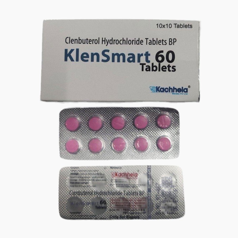 KlenSmart 60 (60 mcg Clenbuterol Hydrochloride) is a bronchodilator primarily used to treat respiratory conditions like asthma and COPD by relaxing airway muscles. It is also used off-label for weight loss and bodybuilding to increase muscle mass and reduce fat, though this carries significant risks.