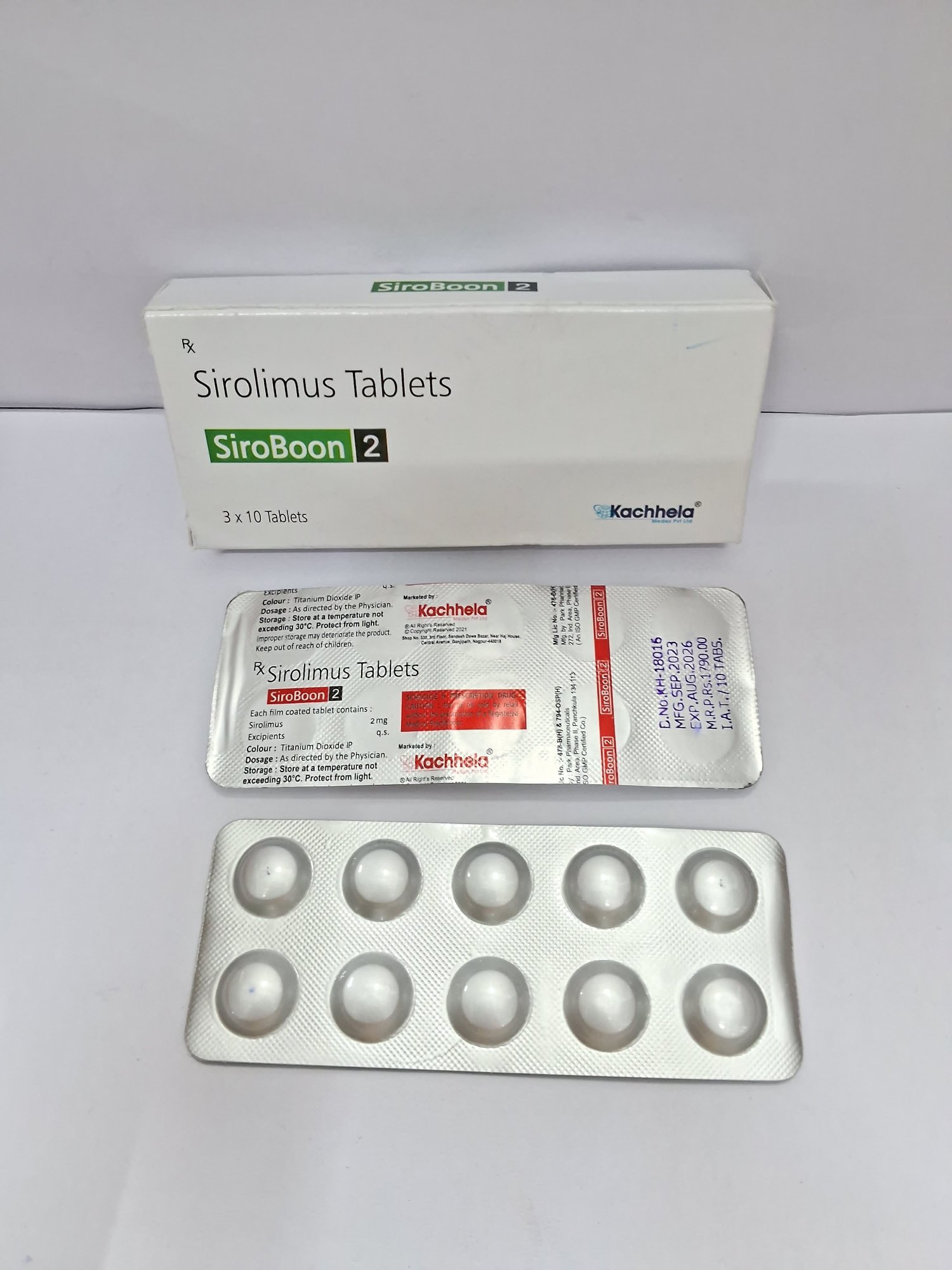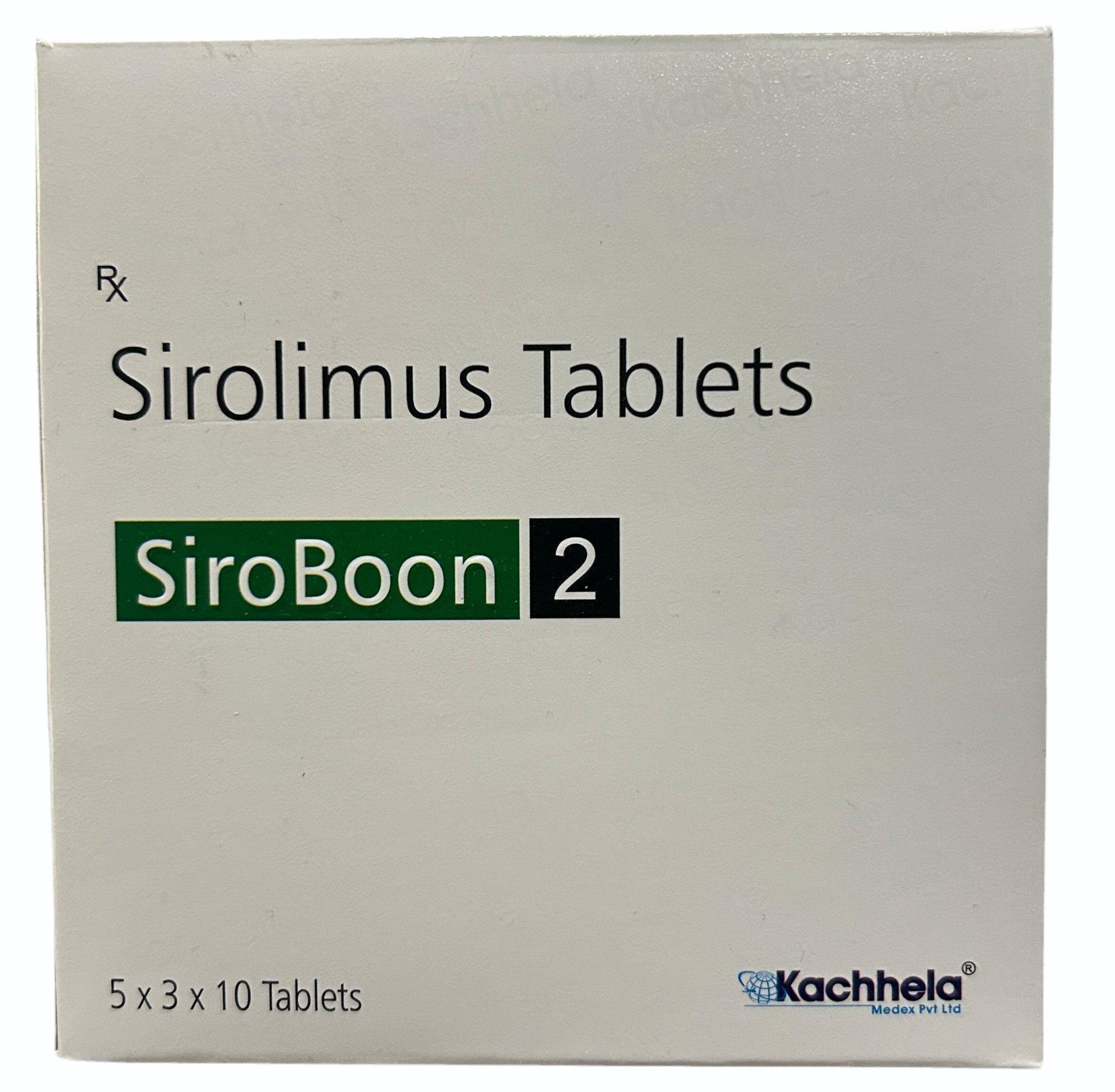 Siroboon 2mg tablet, containing the active ingredient Sirolimus, is an immunosuppressant medication used to prevent organ rejection by lowering the body’s immune response. Manufactured by Kachhela Medex Pvt Ltd, it regulates immunity to help the body accept the new organ