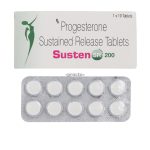 Susten SR 200 mg Tablet contains progesterone, a female hormone used to treat progesterone deficiency, support early pregnancy, and manage irregular menses or infertility. It acts as a hormone replacement therapy (HRT) to protect the uterus and is often used for luteal phase support in ART/IVF treatments.