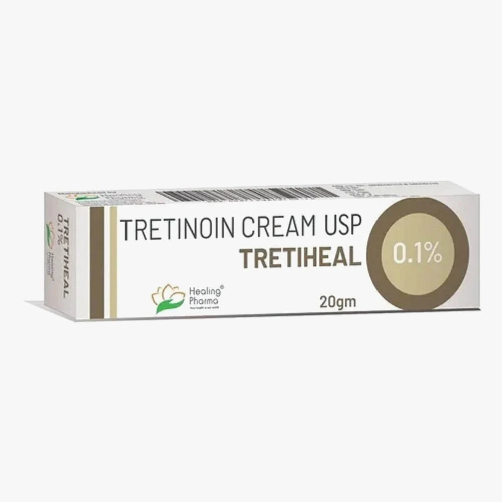 Tretiheal 0.1% Cream (Tretinoin) is a high-strength topical retinoid used primarily to treat severe acne, reduce fine wrinkles, and improve skin texture. It works by increasing skin cell turnover and unblocking pores. Apply a thin layer at night, as it causes high sun sensitivity.