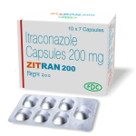 Zitran 200mg capsule is an oral antifungal medication containing Itraconazole as its active ingredient. It is used to treat a wide range of fungal and yeast infections by inhibiting the production of ergosterol, a crucial component of the fungal cell membrane, which ultimately kills the fungus.